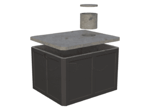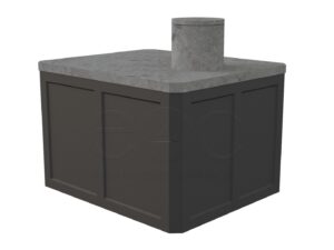 Zbiornik betonowy na szambo lub deszczówkę to aktualnie jedyna alternatywa dla zbiorników z tworzyw sztucznych, gdy w grę wchodzi osiągnięcie kompromisu pomiędzy kosztami a jakością. Zbiorniki betonowe można polecić do montażu w gruntach suchych oraz tam gdzie woda gruntowa nie będzie miała wpływu na eksploatację. Ze względu na montaż górnej płyty zbiornika na zaprawę klejową, (jest to miejsce potencjalnie narażone na nieszczelności), odradzamy wybór tego typu zbiornika gdy woda w gruncie pojawi się już na poziomie połowy jego wysokości.