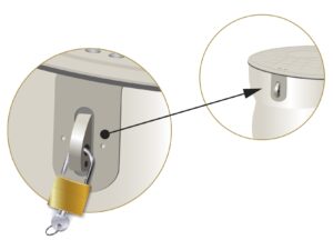1. Włazy wykonane z rury karbowanej jednościennej o długości 500mm, co umożliwia przykrycie zbiornika warstwą ziemi do 600mm (500 + 150 mm siodło włazowe na zbiorniku), z zamkiem umożliwiającym założenie np. kłódki w celu zabezpieczenia przed niepożądanym otwarciem – 3 szt.,
