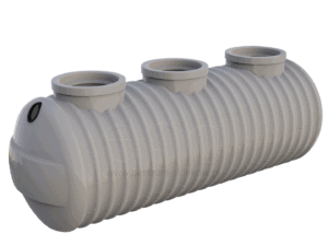 Wzmocniony zbiornik podziemny o pojemności 8000l, trzykomorowy przeznaczony do magazynowania ścieków w budownictwie jednorodzinnym. Jako zbiornik na szambo świetnie sprawdzi się dla 3-4 osób.