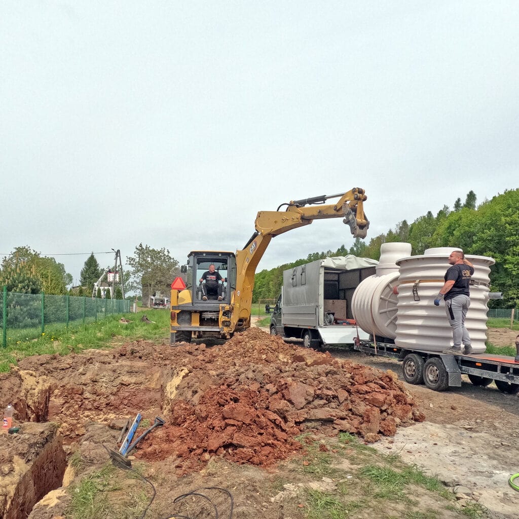 Montaż przydomowej oczyszczalni biologicznej SATIS-FY 900 oraz zbiornika bezodpływowego TITANIUM PRO o pojemności 2400l Pustkowie Lgockie