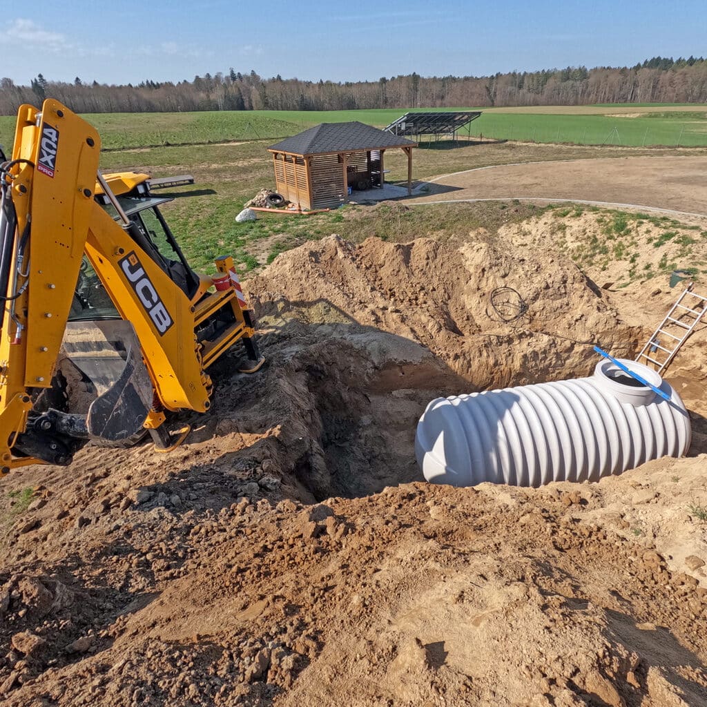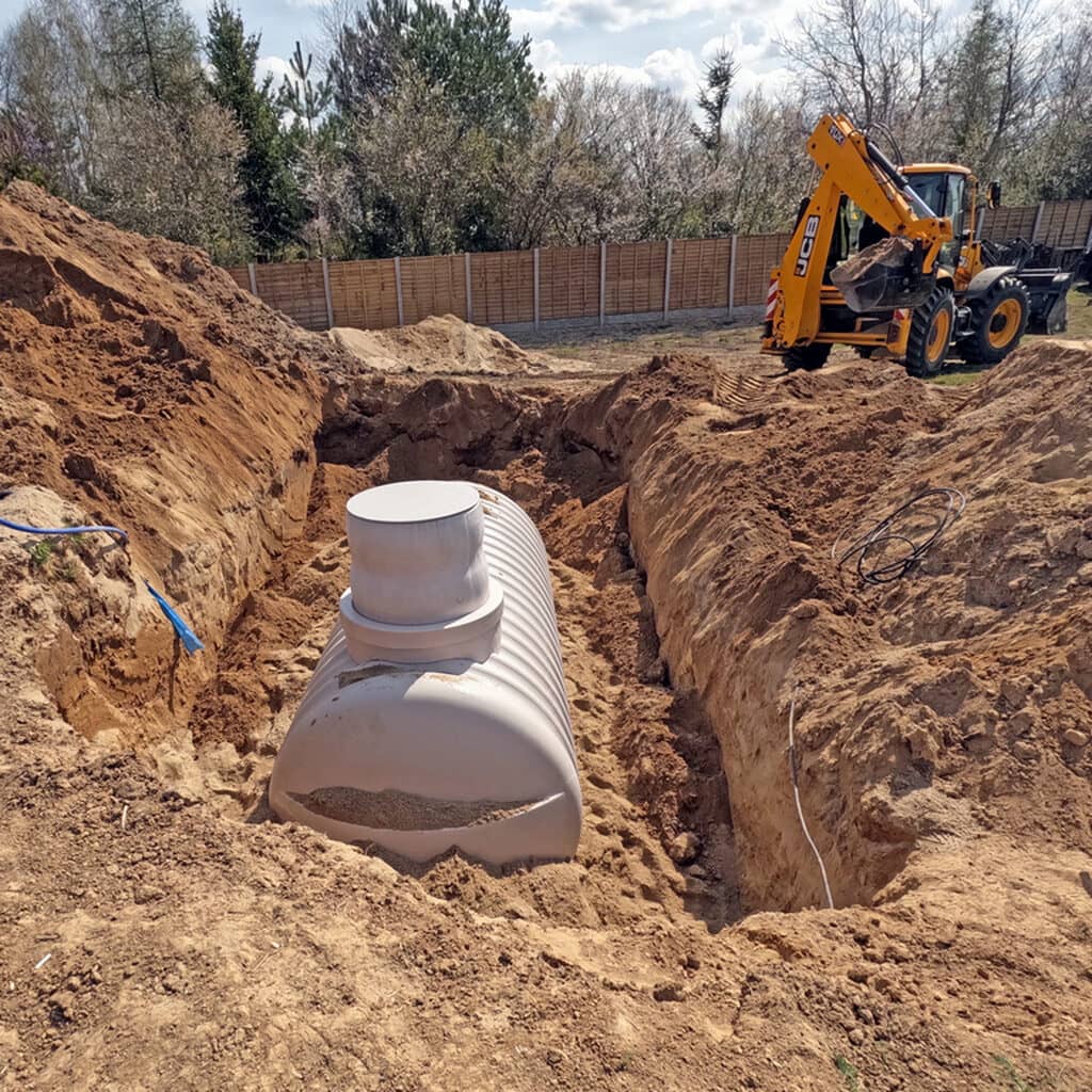 Montaż zbiornika na wodę deszczową o pojemności 7000l w miejscowości Karnieszewice.